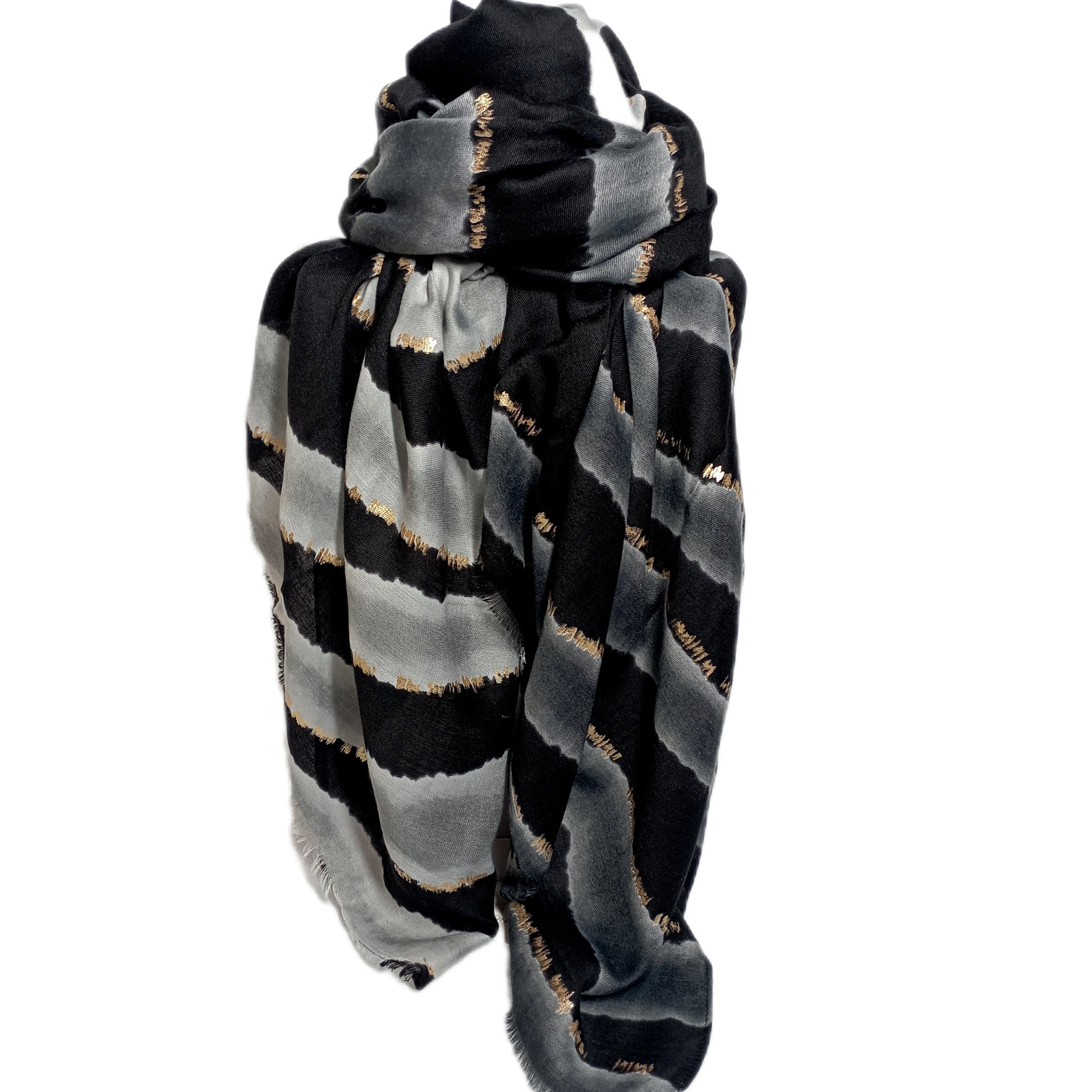 Kräftiger Winterschal "Zebra" mit Goldapplikationen in schwarz-grau